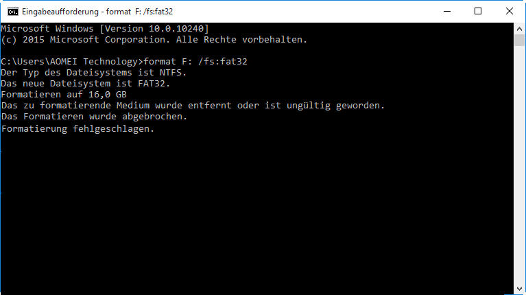 ● Formatierung abgebrochen und Formatierung fehlgeschlagen in CMD
