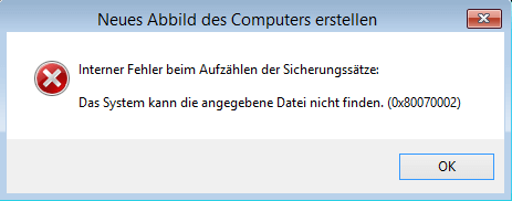 Ich erhalte die Fehlermeldung „Das System kann die angegebene Datei nicht finden (0x80070002)“, die verhindert, dass die Sicherung Windows 10 startet. Von Windows 7 aktualisiert. Alles andere funktioniert zu 100% einwandfrei. Versuchen Sie, auf einem internen Laufwerk zu sichern. Hilfe wäre sehr dankbar, danke!