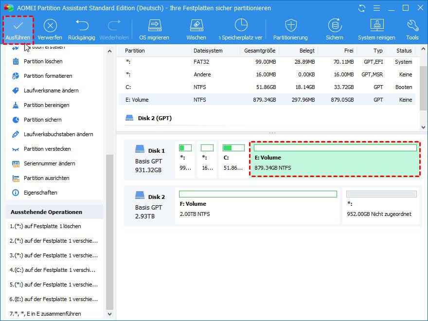 4. Überprüfen Sie die ausstehenden Vorgänge, und klicken Sie auf „Ausführen“ > „Weiter“, um die Änderungen zu speichern.