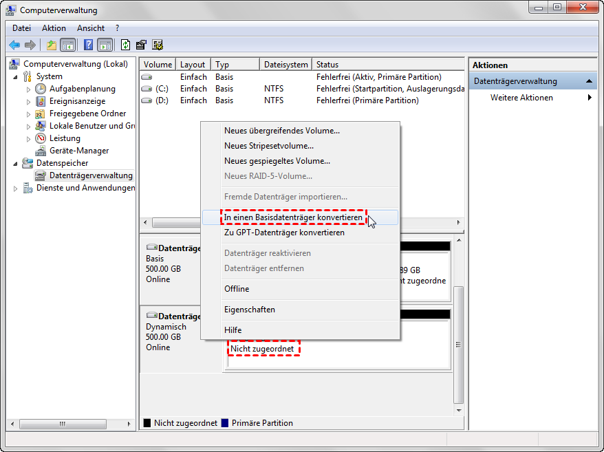 Nach einer Weile können Sie den dynamischen Datenträger ohne Datenverlust in einen Basisdatenträger konvertieren.