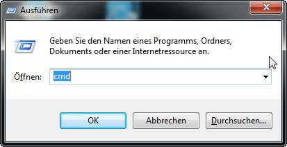 I. Drücken Sie [Windows + R] gleichzeitig, um Ausführen-Feld zu öffnen. Geben Sie „cmd“ ein, und drücken Sie die Eingabetaste.