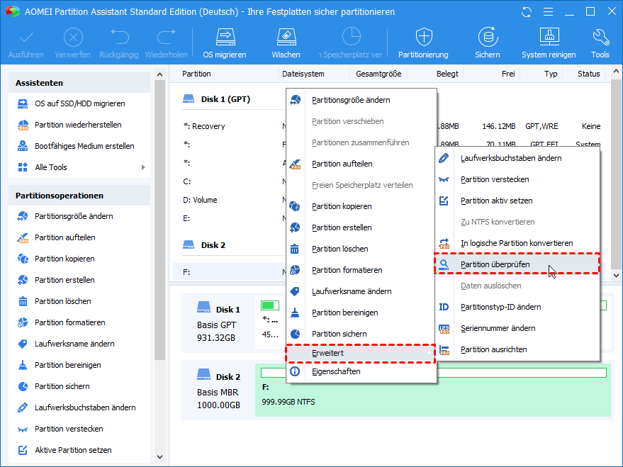 2 Methoden: Festplatte reparieren in Windows 10/11 mit AOMEI Partition Assistant