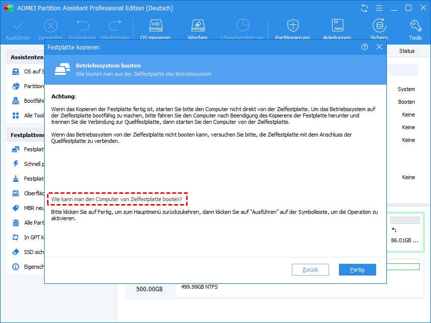 Nach dem Kopieren von der geklonten Festplatte booten - So geht's