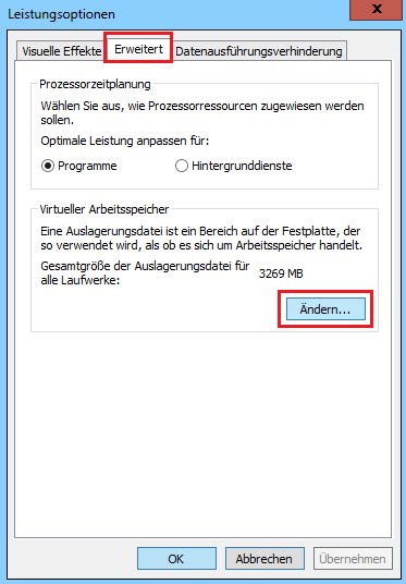 Schritt 4. Klicken Sie auf die Registerkarte „Erweitert“ und dann auf „Ändern“ unter „Virtueller Arbeitsspeicher“.