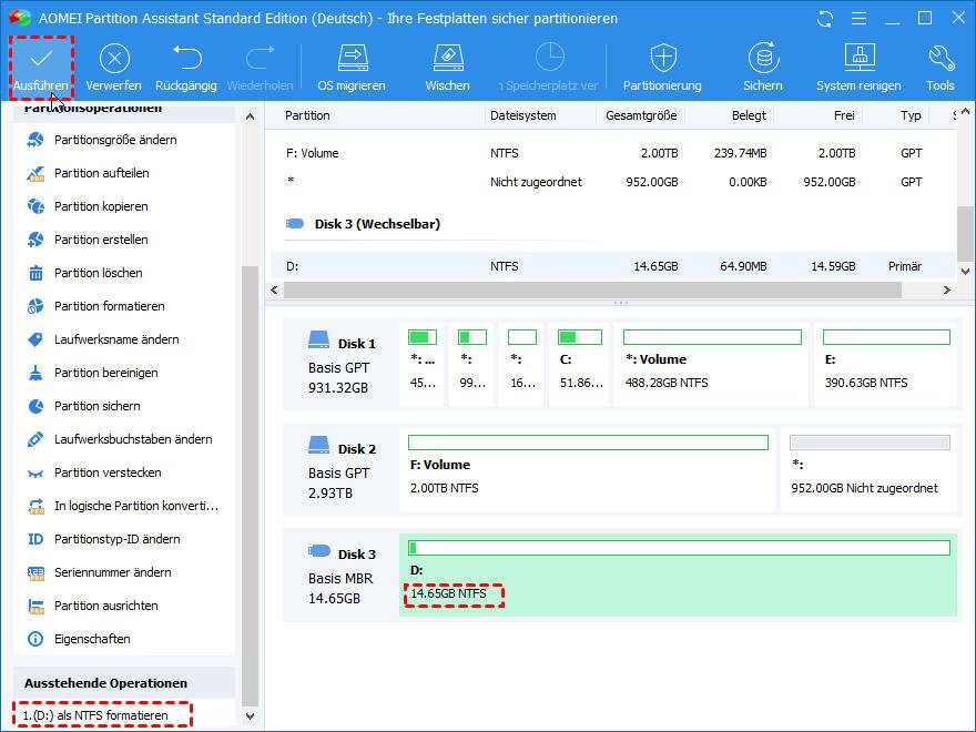 Um die ganze SD-Karte zu formatieren, empfehlen wir Ihnen hier eine gute Software - AOMEI Partition Assistant, die Ihnen viel hilfen kann.