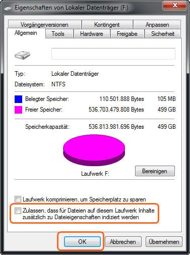 Tipp 5. Die Festplattenindizierung deaktivieren