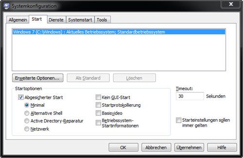 2. Aktivieren Sie auf der Registerkarte „Start“ die Option „Abgesicherter Start“, übernehmen Sie die Änderungen und starten Sie Ihren Computer im abgesicherten Modus neu.