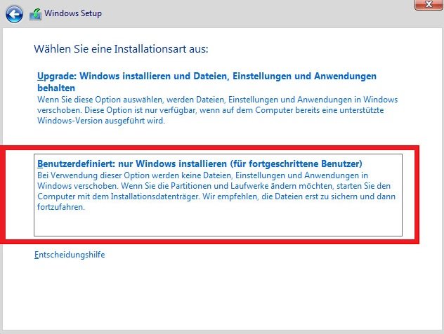 Schritt 6. Wählen Sie den Installationstyp für Windows 10 aus: Benutzerdefiniert.