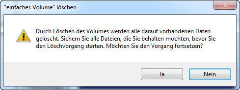 Schritt 4. Die Datenträgerverwaltung warnt Sie, dass die Daten auf der Partition gelöscht werden. Klicken Sie auf Ja, um fortzufahren.