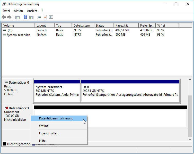 4. Datenträgerverwaltung: Die Festplatte wurde in der Datenträgerverwaltung nicht richtig initialisiert oder hat keinen zugewiesenen Laufwerksbuchstaben.