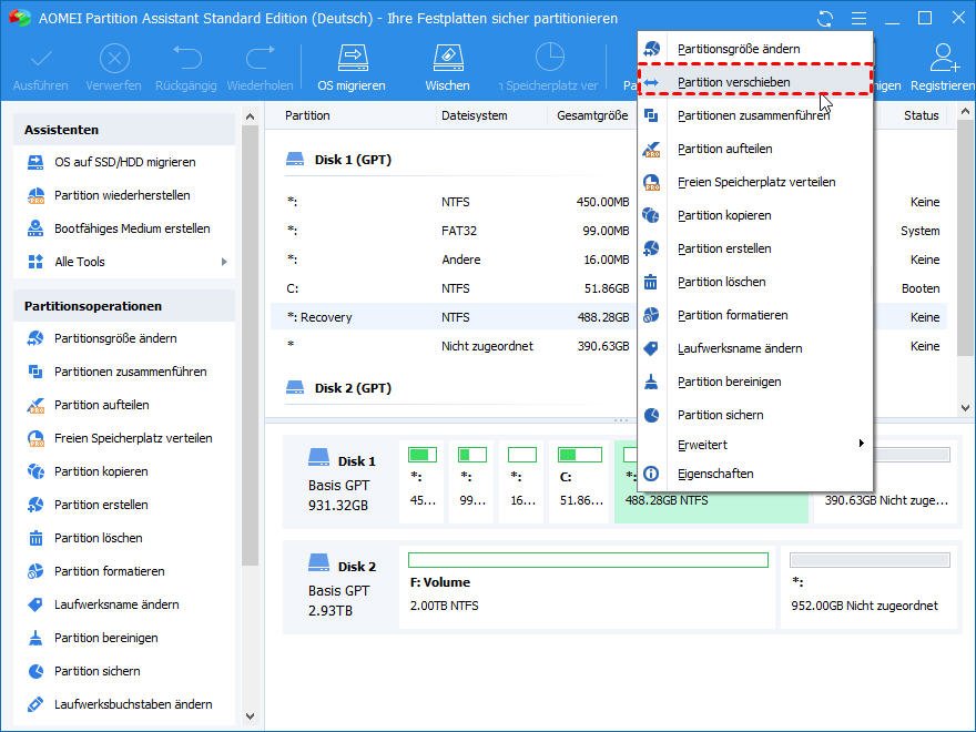 In einigen Fällen verhindert die Wiederherstellungspartition die Erweiterung des Laufwerks C, wenn es sich direkt neben dem Laufwerk C befindet. In diesem Fall müssen Sie die Windows 10 Wiederherstellungspartition an einen anderen Speicherort verschieben und Platz für nicht zugeordneten Speicherplatz schaffen.