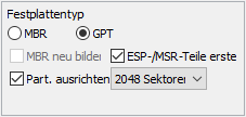 Die EFI-Partition erscheint nur auf einer GPT-Systemfestplatte. Wenn Sie also Ihre SSD als Systemfestplatte verwenden möchten und Ihr Gerät den UEFI-Boot-Modus unterstützt, können Sie sie im GPT-Partitionsstil initialisieren, um eine höhere Laufgeschwindigkeit und bessere Leistung zu erzielen.