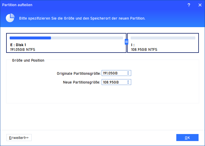 Methode 2. Partition mit dem nicht zugeordneten Speicherplatz vergrößern
