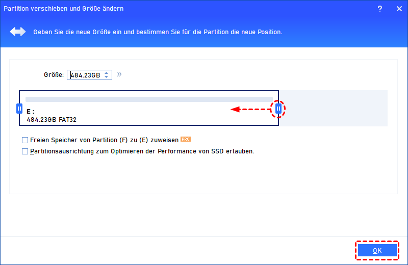 Schritt 2. Ziehen Sie hier die Leiste auf die linke Seite, um sie zu verkleinern, und klicken Sie auf OK.