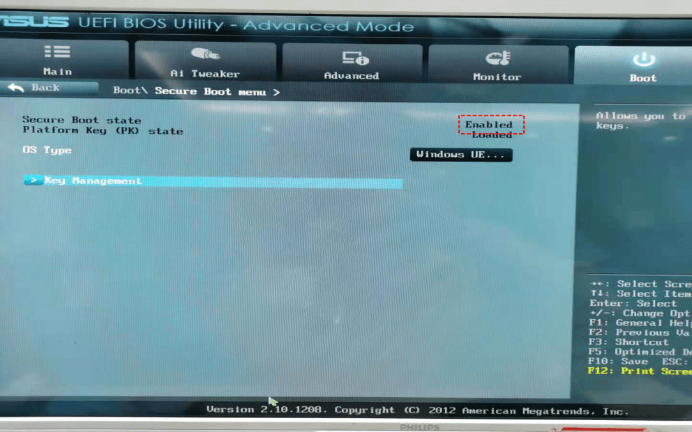UEFI erfordert, dass bestimmte vertrauenswürdige öffentliche Schlüssel auf dem Motherboard vorinstalliert werden, bevor es den Hersteller verlässt. Jedes Betriebssystem oder jeder Hardwaretreiber, der auf dieses Motherboard geladen werden möchte, muss sich zuerst mit diesen öffentlichen Schlüsseln authentifizieren. Obwohl die meisten PCs Secure Boot unterstützen, ist es möglicherweise nicht aktiviert.