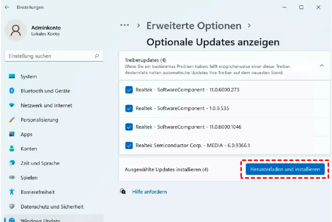 Schritt 4. Klicken Sie auf Optionale Updates anzeigen.