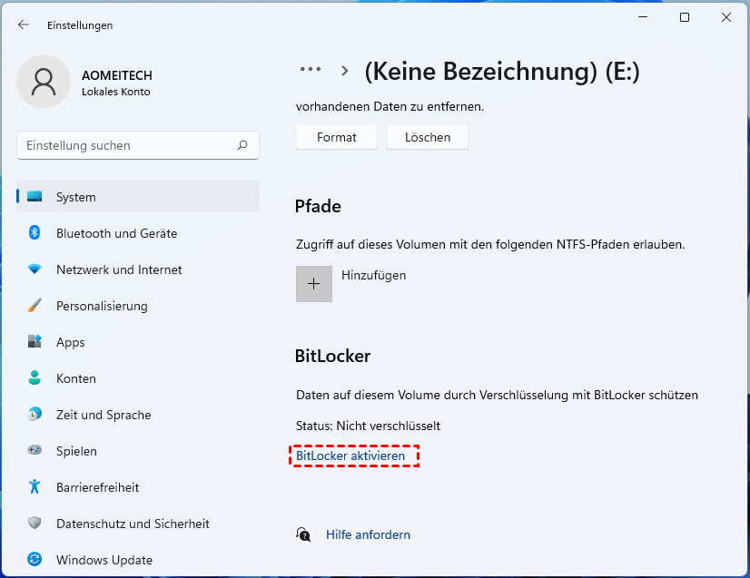 Hinweis: Sie können nur NTFS-Partitionen verschlüsseln.