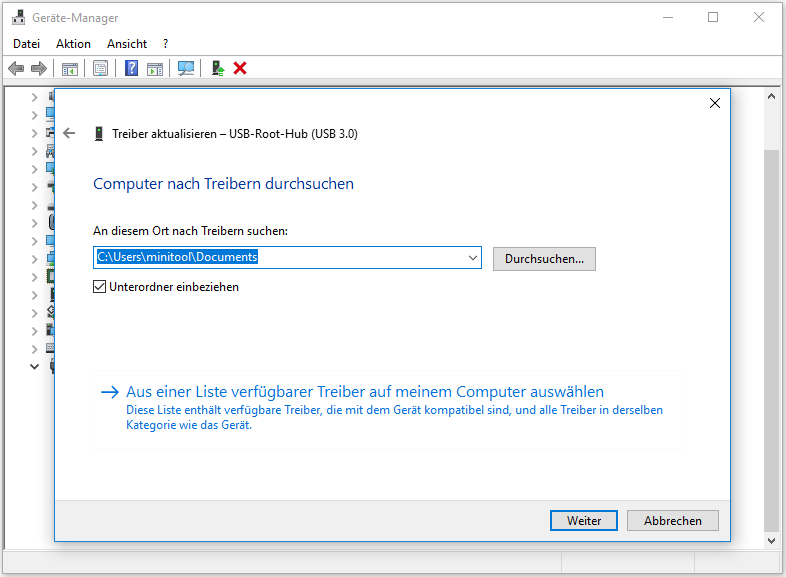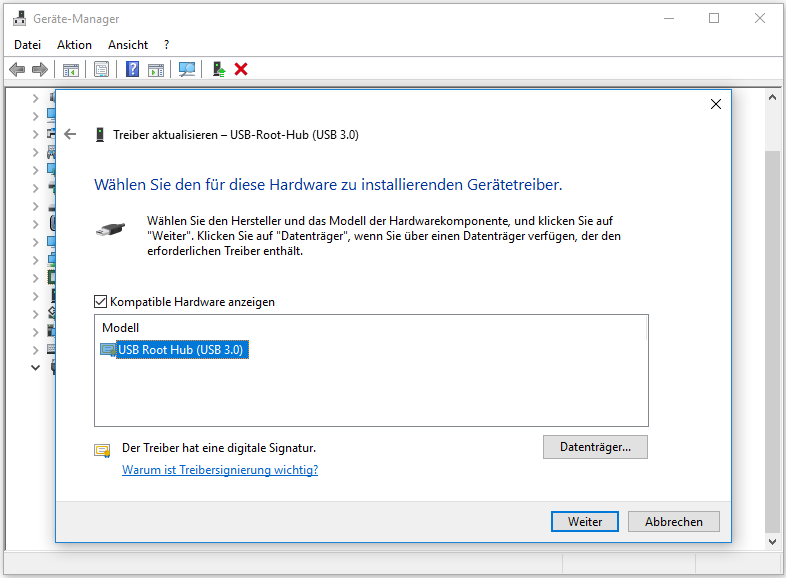Schritt 5. Wählen Sie „USB Root Hub (USB 3.0)“ und klicken Sie auf „Weiter“.