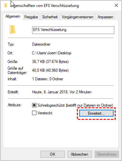 Schritt 4. Kehren Sie zum Bildschirm mit den Ordnereigenschaften zurück und klicken Sie auf „Übernehmen“.