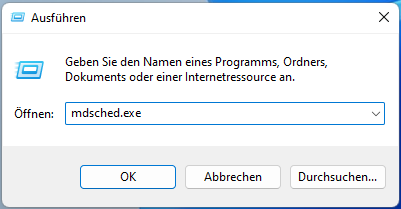 Schritt 1. Drücken Sie „Win + R“, um das Dialogfeld AUSFÜHREN zu öffnen, geben Sie „mdsched.exe“ ein und drücken Sie die Eingabetaste.