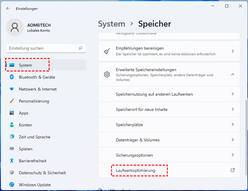 ● Weg 1. Festplatte defragmentieren mit dem in Windows 11 integrierte Tool