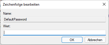 Schritt 7: Doppelklicken Sie auf DefaultPassword und geben Sie das korrekte Kontopasswort im Bereich „Wert“ ein. Klicken Sie auf OK.