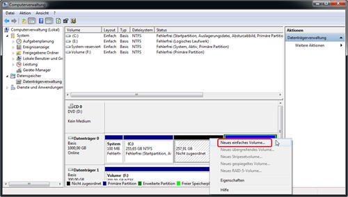 Wie erstellt man eine neue Partition in Windows 7 von C-Laufwerk?