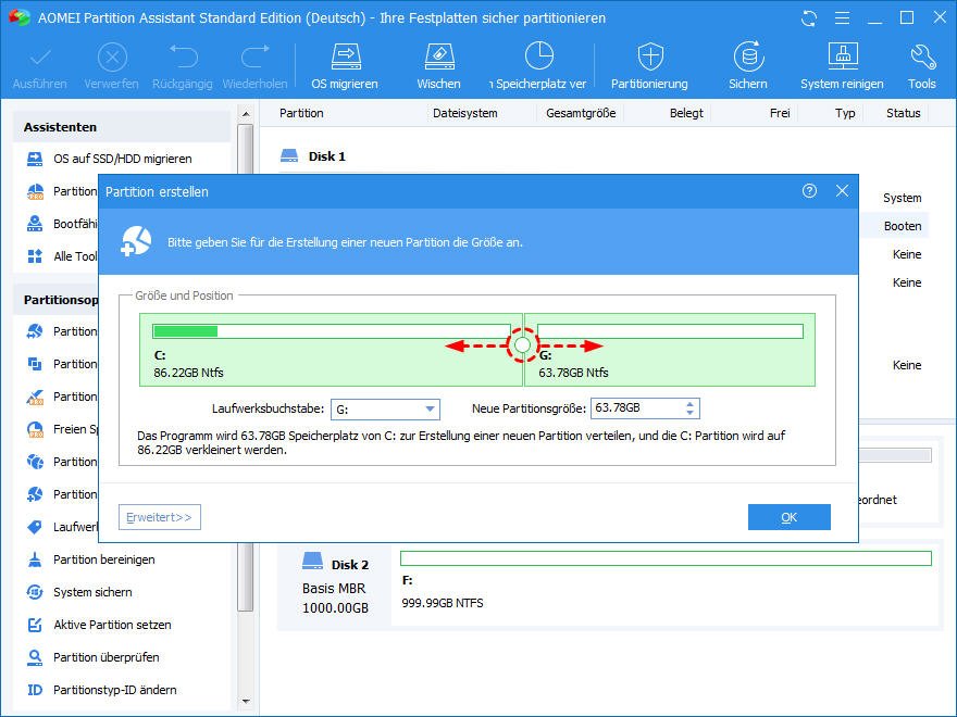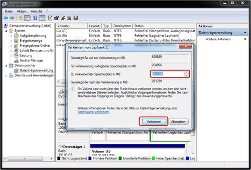 Wie erstellt man eine Partition in Windows 7 aus Laufwerk C ohne Formatierung?