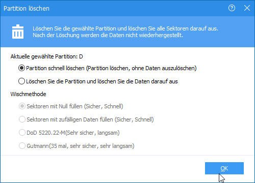 2. Wählen Sie im Fenster die richtige Methode, um die Partition zu löschen, wie Sie es benötigen.