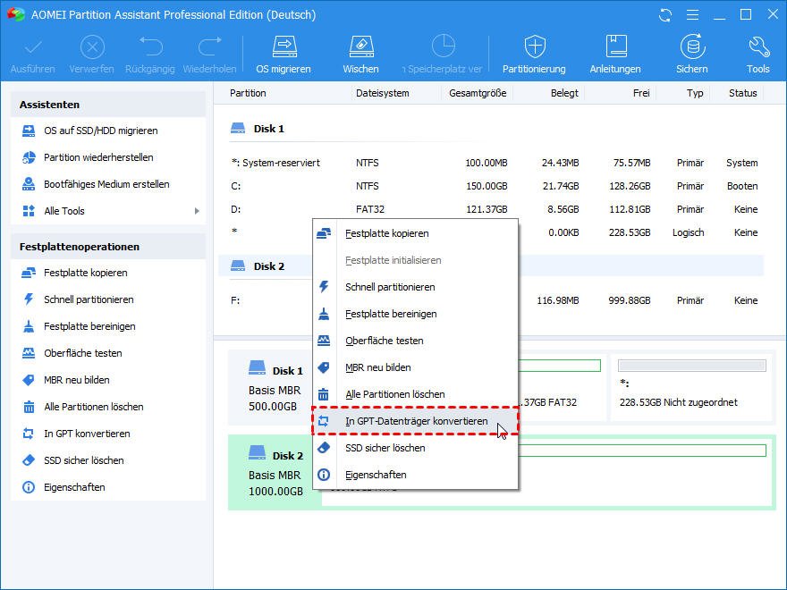 Methode 1: Datenträger von MBR zu GPT konvertieren