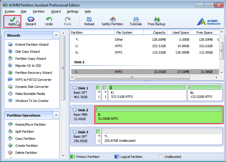 3. Now the USB drive is with NTFS file system. Click “Apply” to execute it.