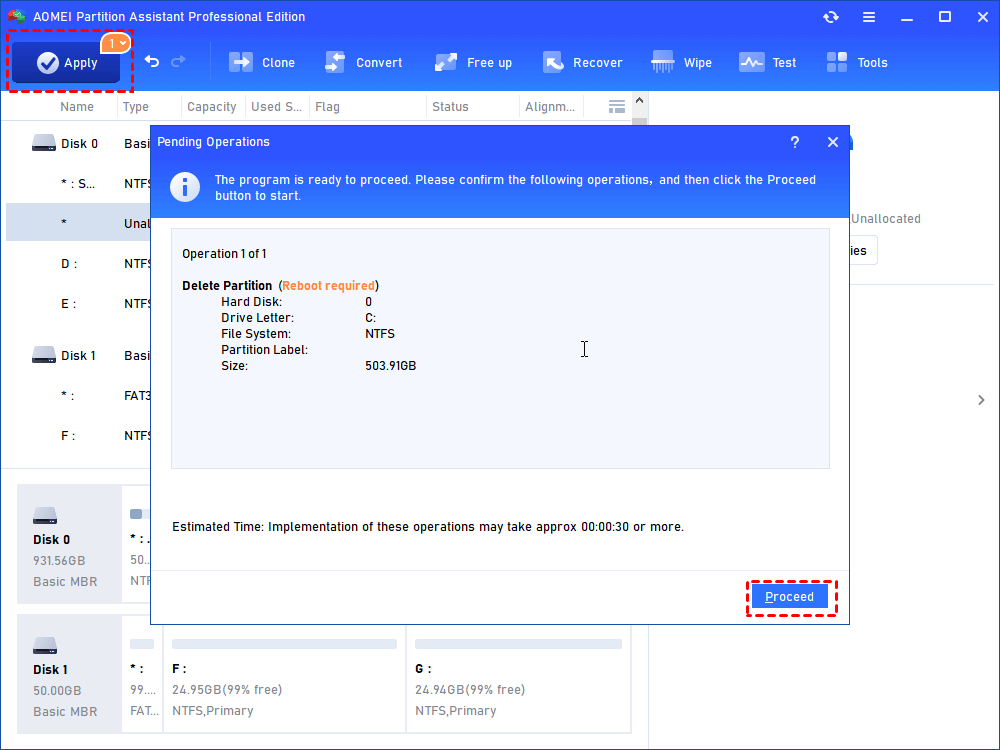 Step 3. Click “Apply” and “Proceed” to confirm the operation.