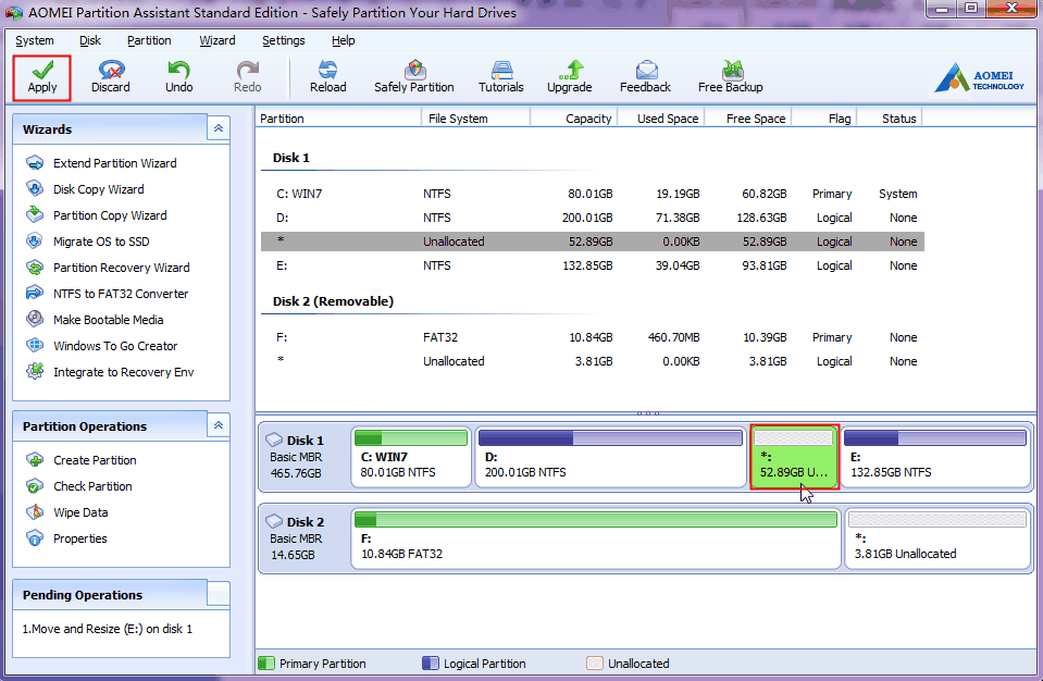 3. You'll find the unallocated space is before this partition. Click “Apply” >“Proceed” to execute it.