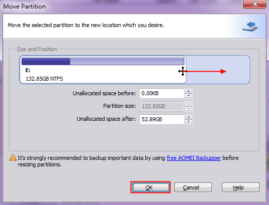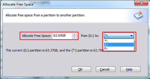 2. In the pop-up window, specify the size of free space and choose the boot partition as the target partition.