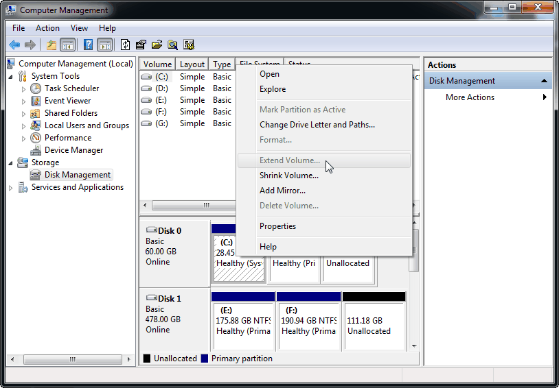 Extend Volume is disabled in Windows 7/8/10/11 for C drive makes the majority of people painful. In Disk Management, you cannot extend the partition with FAT32, FAT16, etc. Also, you cannot extend the partition without right adjacent unallocated space. But if you choose the best free partition manager: AOMEI Partition Assistant Standard, you can overcome the limitations in Disk Management. And you have various choices like Move Partition, Resize Partition, Merge Partition, etc.