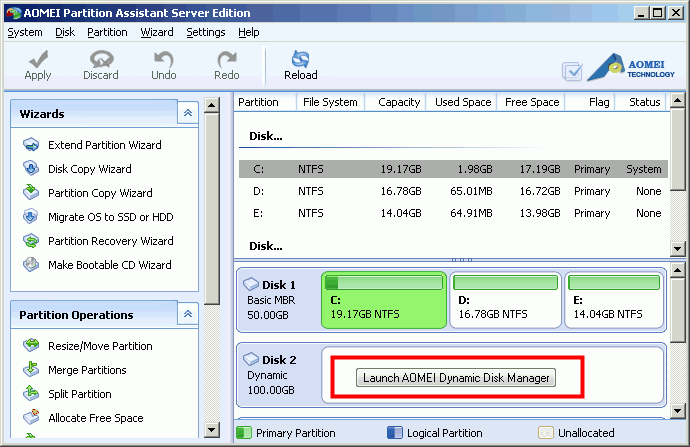 Step1: Open Partition Assistant Server Edition. Click “Dynamic Disk Manager” in the right menu.