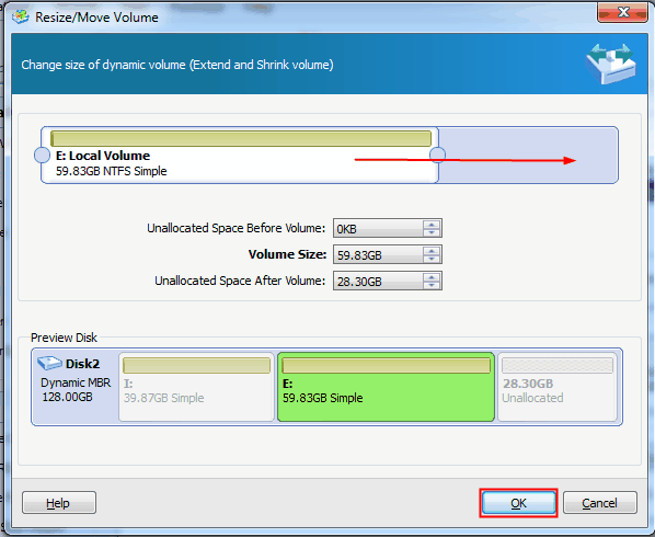 Step 3: You can drag the button to adjust the size of this drive, and click "OK", "