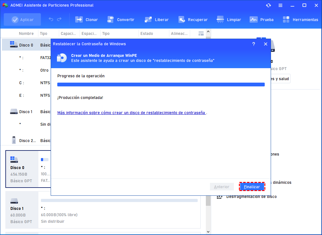 Paso 6. Cuando se haya creado el USB para restablecer contraseña, haz clic en "Siguiente".