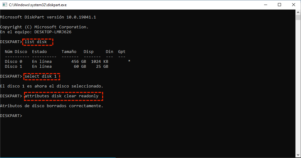 Si su SSD ha sido configurada accidentalmente como solo lectura en Diskpart, puede desactivar esta configuración utilizando CMD. A continuación se detallan los pasos a seguir.