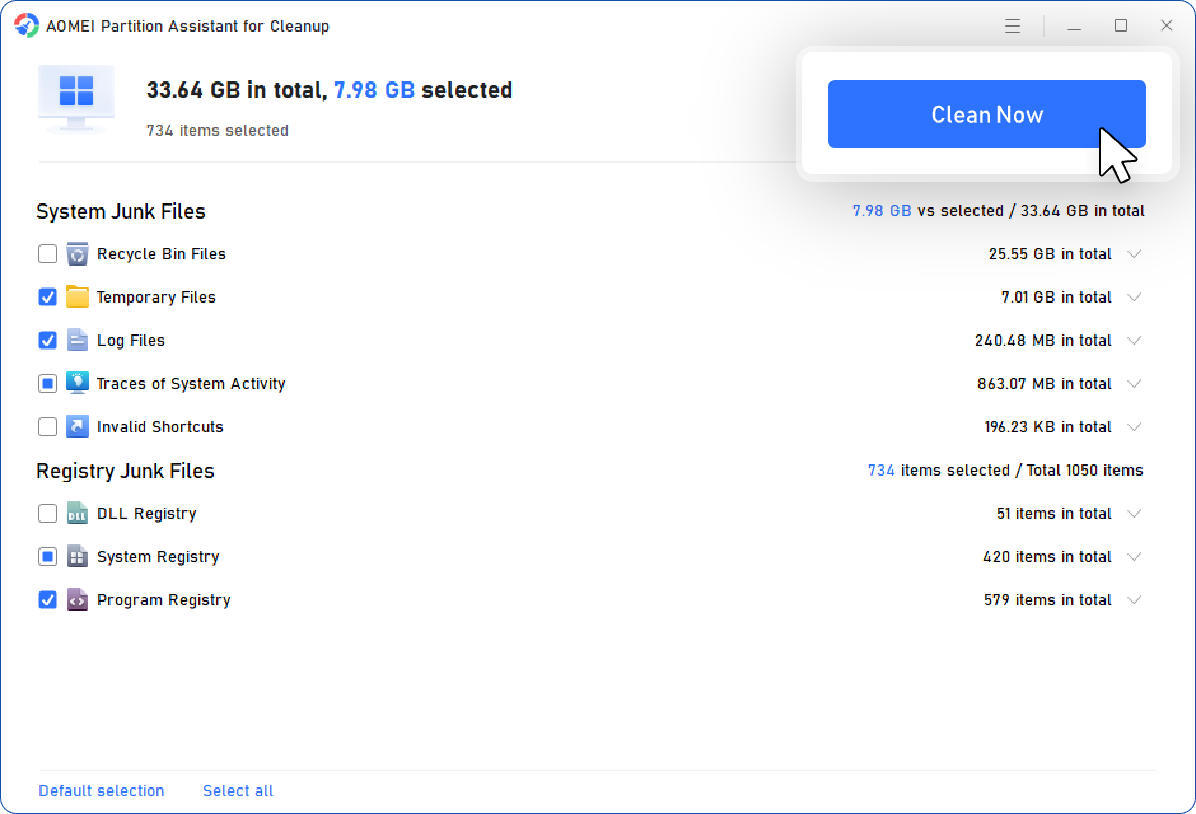 AOMEI Partition Assistant for Cleanup es una forma rápida y sencilla de eliminar archivos no deseados de tu PC y mejorar notablemente su rendimiento.