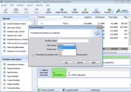 3. Choose a file system and click “OK” to proceed.
