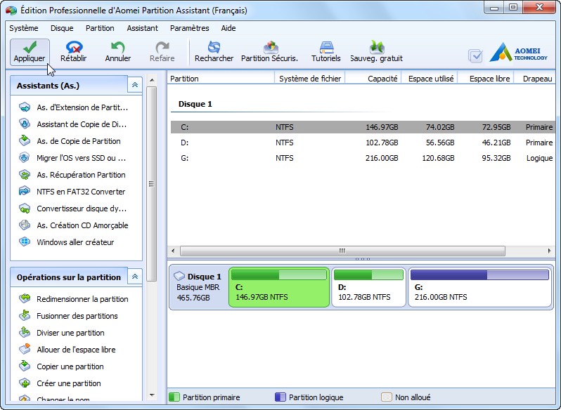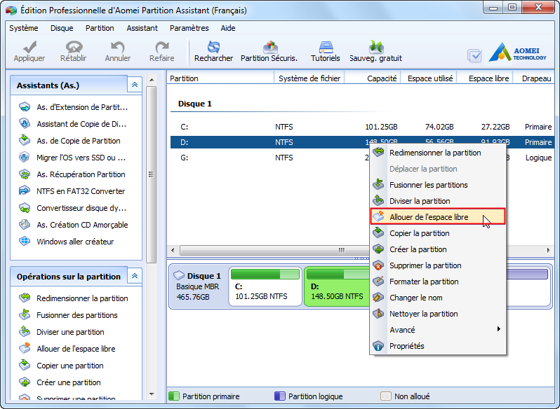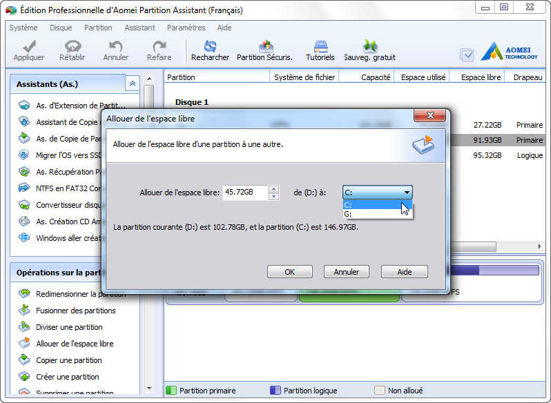 Comment augmenter l'espace disque C avec AOMEI Partition Assistant ?