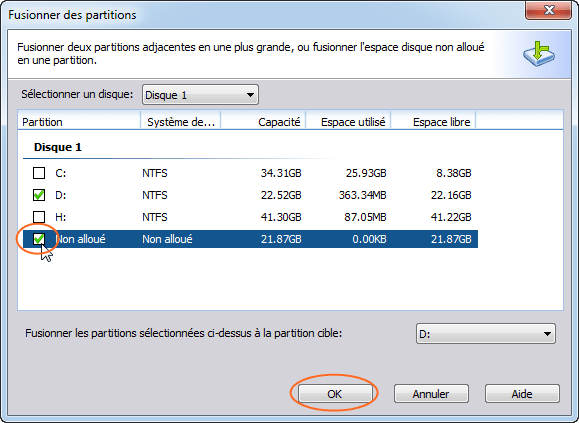 Tant qu'il y a de l'espace non alloué sur le disque dur où se trouve la partition D, vous pouvez l'augmenter en quelques clics.