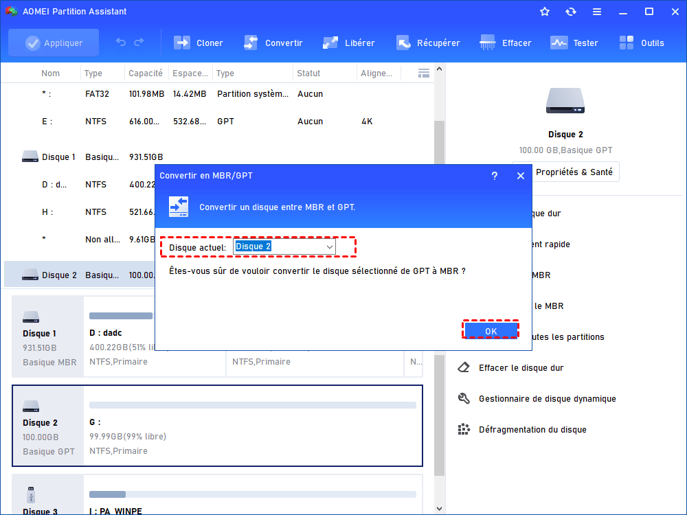 Partie 2. Changer le style de partition GPT en MBR sans perdre de données