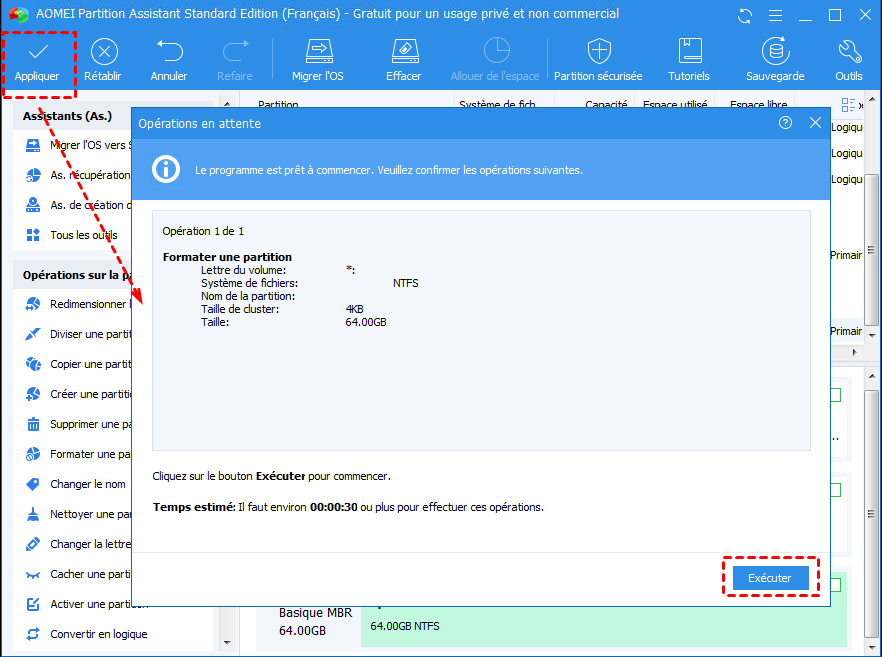 Si vous n'êtes pas familier avec l'invite de commande, vous pouvez utiliser l'outil de formatage de clé USB Lexar - AOMEI Partition Assistant Standard. C'est beaucoup plus facile. Toutes les étapes sont fixes et il n'y a aucune possibilité d'erreur opérationnelle.