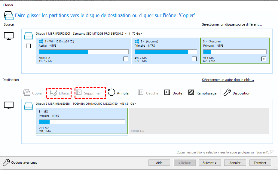 • Cloner un disque plus grand sur un disque plus petit