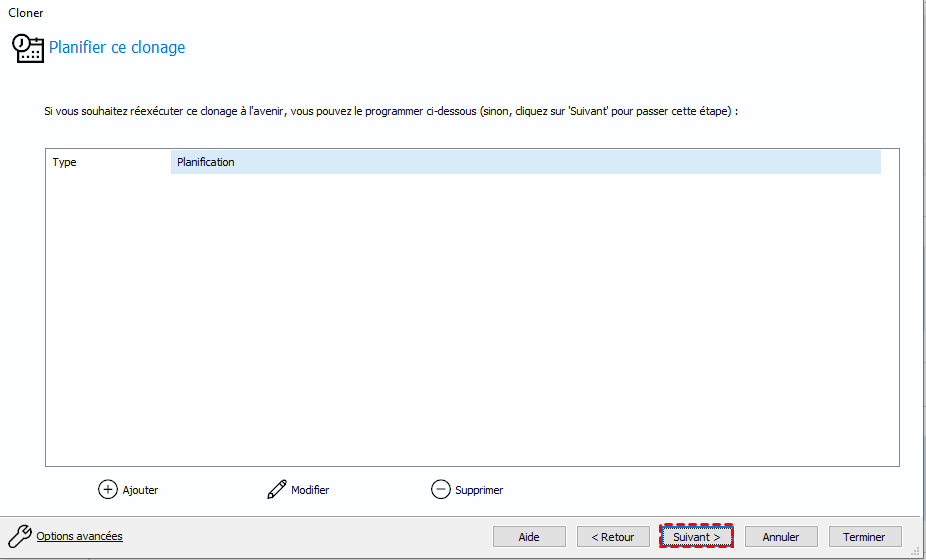 Étape 6. Vous pouvez également redimensionner la partition avant de cloner, alors sélectionnez « Suivant ». Sur cette page, vous pouvez créer un calendrier de clonage. Si une planification est créée, le clonage sera effectué automatiquement lorsque l'heure planifiée est atteinte sans autre intervention de l'utilisateur.