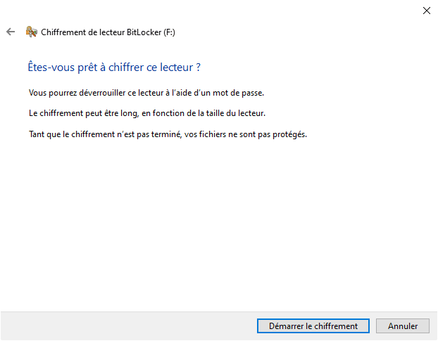 6. Lorsque vous êtes prêt, cliquez sur "Démarrer le chiffrement".