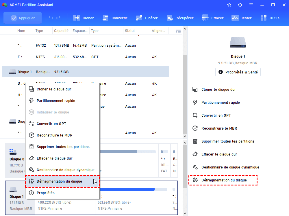 Ătape 1. AprĂšs avoir tĂ©lĂ©chargĂ© et installĂ© cet outil, ouvrez-le sur le bureau. Faites un clic droit sur le disque que vous voulez dĂ©fragmenter, et sĂ©lectionnez « DĂ©fragmentation du disque ».