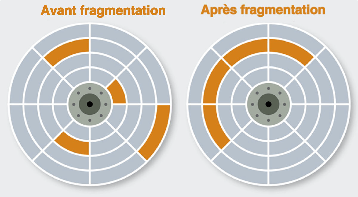 En raison des téléchargements et des installations répétés, des données complÚtes sont stockées dans des secteurs non contigus, ce qui augmente la vitesse de lecture. La défragmentation de disque consiste à transformer les données discontinues du secteur en données continues, afin de raccourcir le temps de lecture des données par le disque et d'améliorer la vitesse.